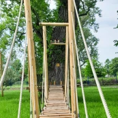 Aktywnie wśród drzew. Trasa parku linowego da satysfakcję zarówno tym młodszym, jak i starszym poszukiwaczom przygód. Czeka tu na Was tyrolka, lewitujące krzesła i wiele innych przeszkód. Wystarczy mocno się trzymać i z odwagą iść naprzód.